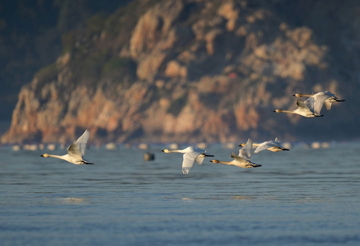 一群天鹅飞过闽江河口湿地上空(2023年1月31日摄)。新华社记者 魏培全 摄